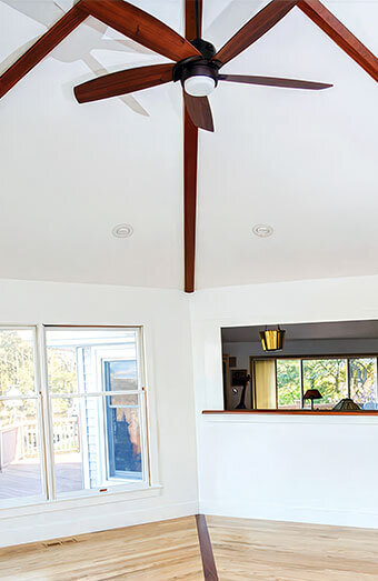 Complete service to run new wiring and install ceiling fans where none previously existed, including circuit setup and proper bracing.